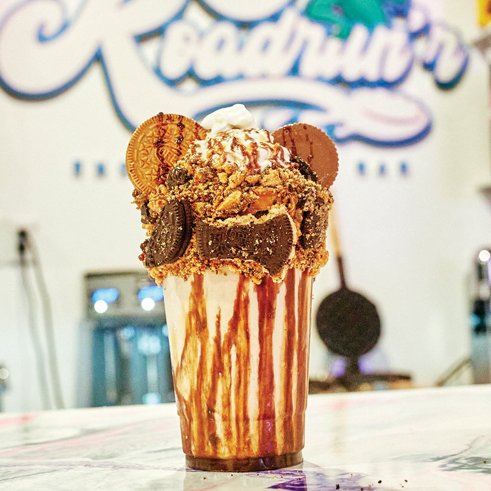 More accurately, a cereal bar, the first of its kind in the Tarrant area. Opened earlier this summer by local entrepreneur Devon Wordlaw, Roadrun’r Exotic Cereal Bar offers bowls of cereal in both straightforward and wildly imaginative varieties. If you want a bowl of Frosted Flakes, Wordlaw can do that. Or if you want a bowl of Frosted Flakes decked out with gummy bears, whipped cream, powdered sugar, caramel, ice cream, and chocolate sauce, Wordlaw can do that, too.