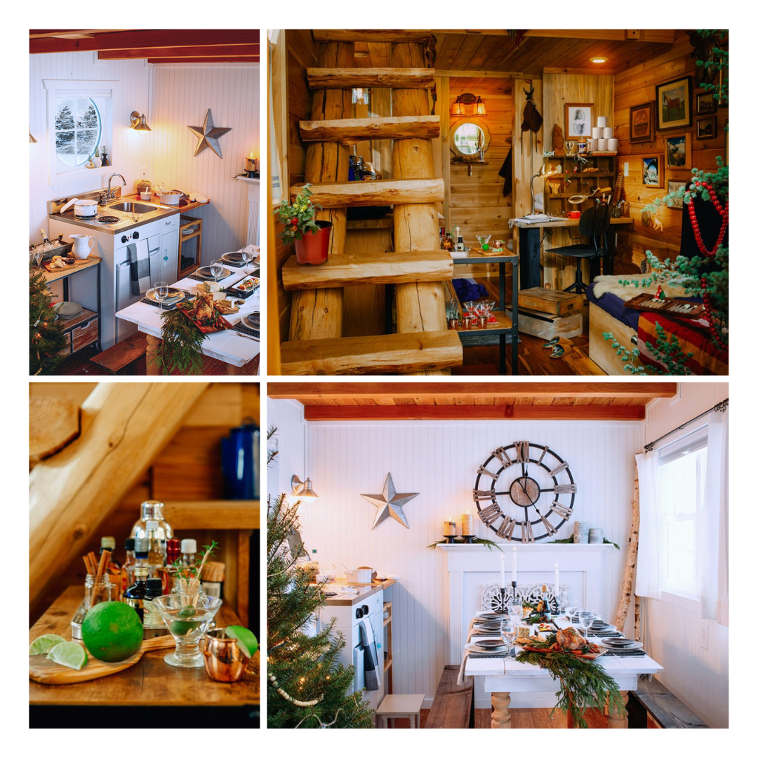 RSVP for your spot at the table in the tiny farmhouse if you love a good dinner party. The open concept floor plan allows for the host to prepare nibbles while entertaining guests by a crackling fire.