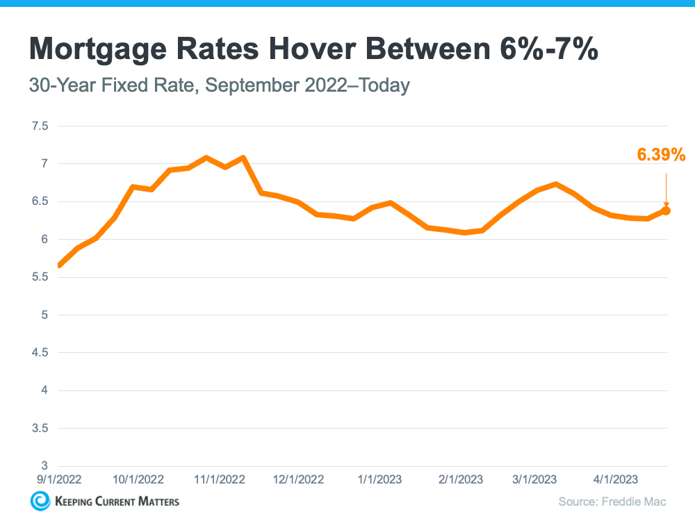 While mortgage rates are higher than they were a year ago, they’ve hovered primarily between 6% and 7% for nearly eight months now (see graph below):