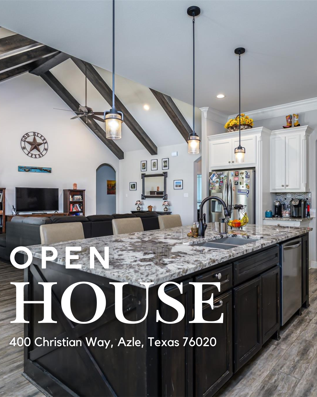 🗓 Open House: Saturday from 1–3 PM 📍 400 Christian Way, Azle, TX 76020 🏡 4 Beds | 2 Baths | 2,570 Sq Ft | 1 Acre | Built in 2020