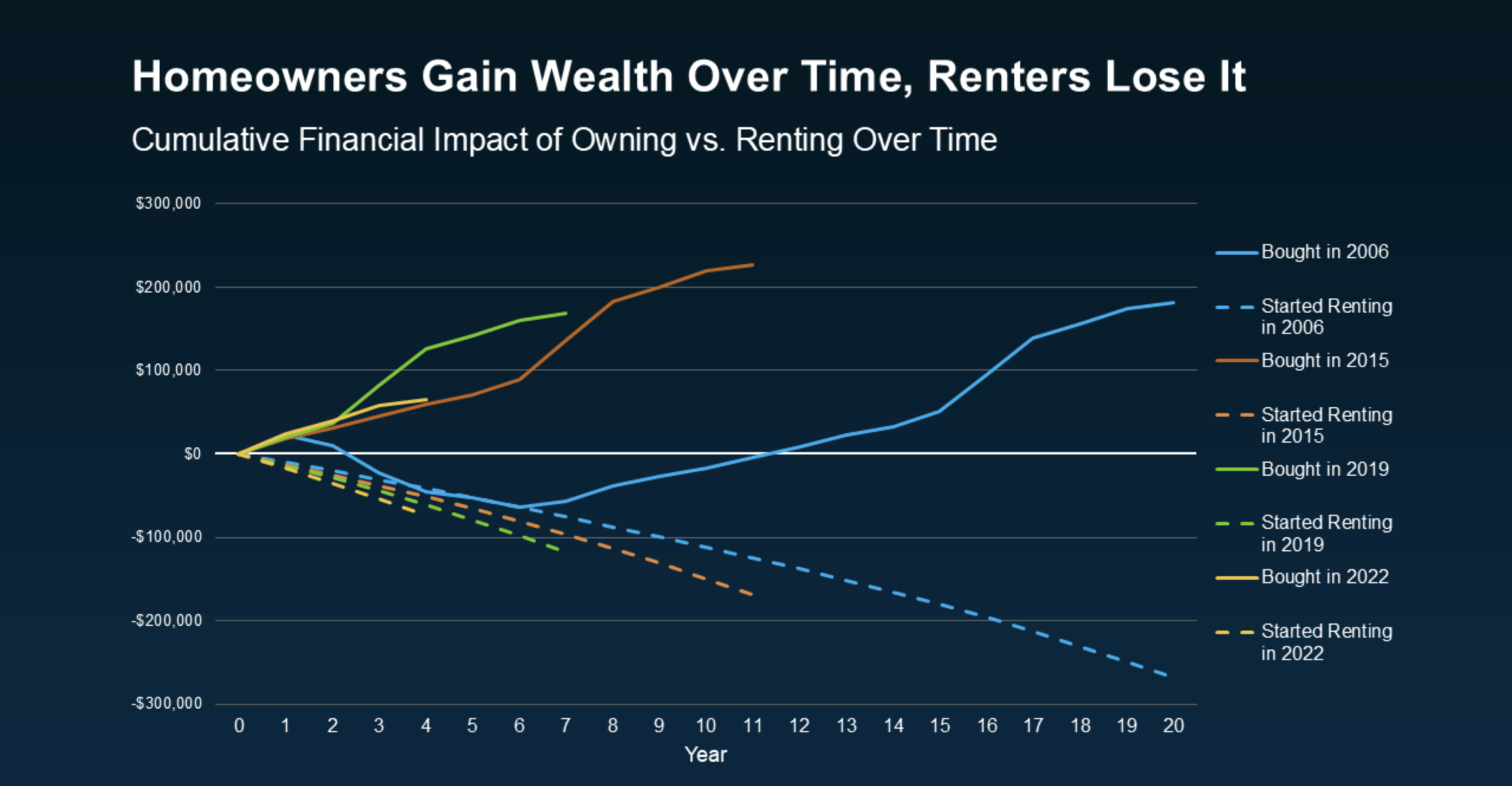✅ Homeowners gained wealth over time ❌ Renters lost money over time