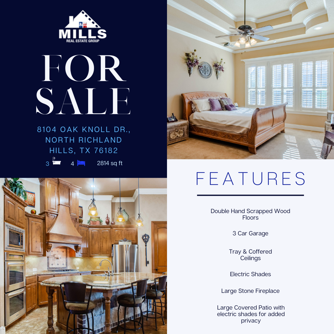 This beautiful custom home in the sought-after Forest Glen subdivision will not last long! 🏡 This 2814 square foot home is detailed and oversized. Double scraped hardwood floors, tray and coffered ceilings, custom trim work, luxury carpet, plantation shutters, dedicated office with built-ins, crown molding throughout, a 3 car garage and electric shades. True master retreat offers space to relax in a spa like bath with dual vanities, walk-in shower, soaker tub & walk-in closet that connects to the oversized utility room. The large second bathroom has dual vanities, soaker tub, walk in shower and ample storage. 🛁 Open concept living room showcases a stone fireplace and floor to ceiling widows with electric shades. The large kitchen features a granite topped island, stainless steel appliances, double oven, five burner gas range and a soft touch faucet. Enjoy the hot summer and cool winter nights under a covered patio with a stone fireplace and electric shades for added privacy & shade.🌟