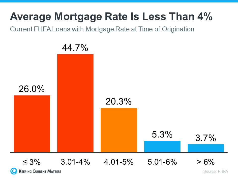 According to the Federal Housing Finance Agency (FHFA), the average interest rate for current homeowners with mortgages is less than 4% (see graph below):